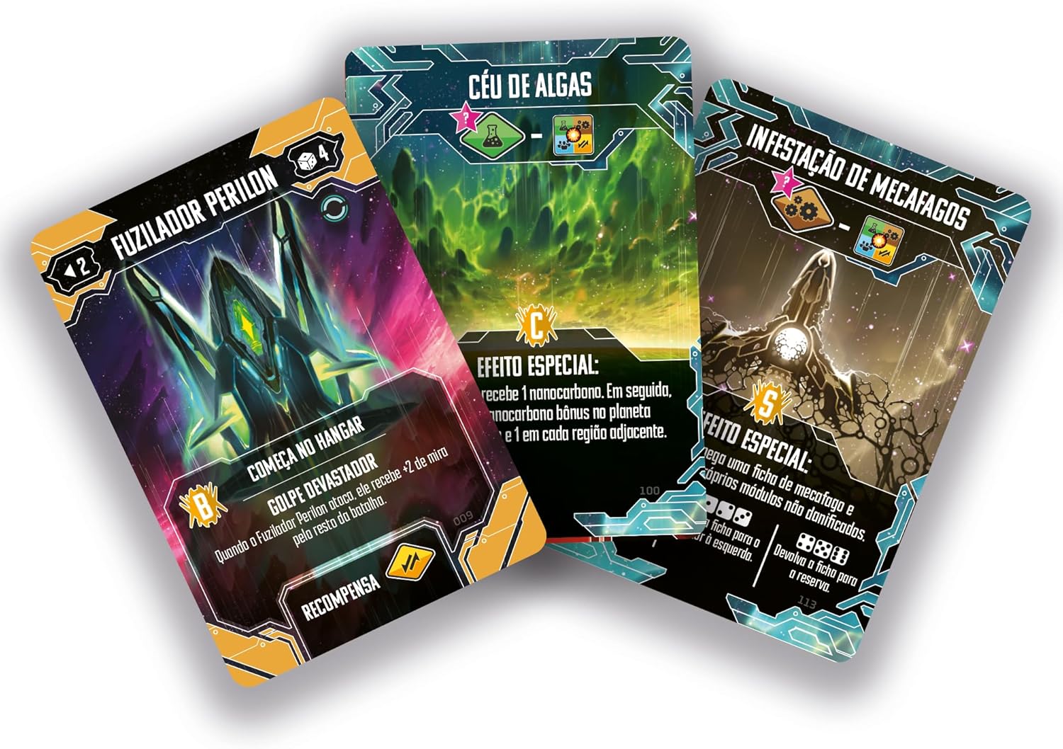 Ao longo do jogo, você desenvolverá sua facção única, construindo desenvolvimentos (Observatórios, Fábricas, Espaçoportos, Cidades e Obeliscos) e ganhando módulos de estação que o farão avançar nas trilhas de progresso. O avanço nas trilhas é recompensado tanto durante os eventos do meio do jogo quanto na conclusão, e é a chave para a vitória.