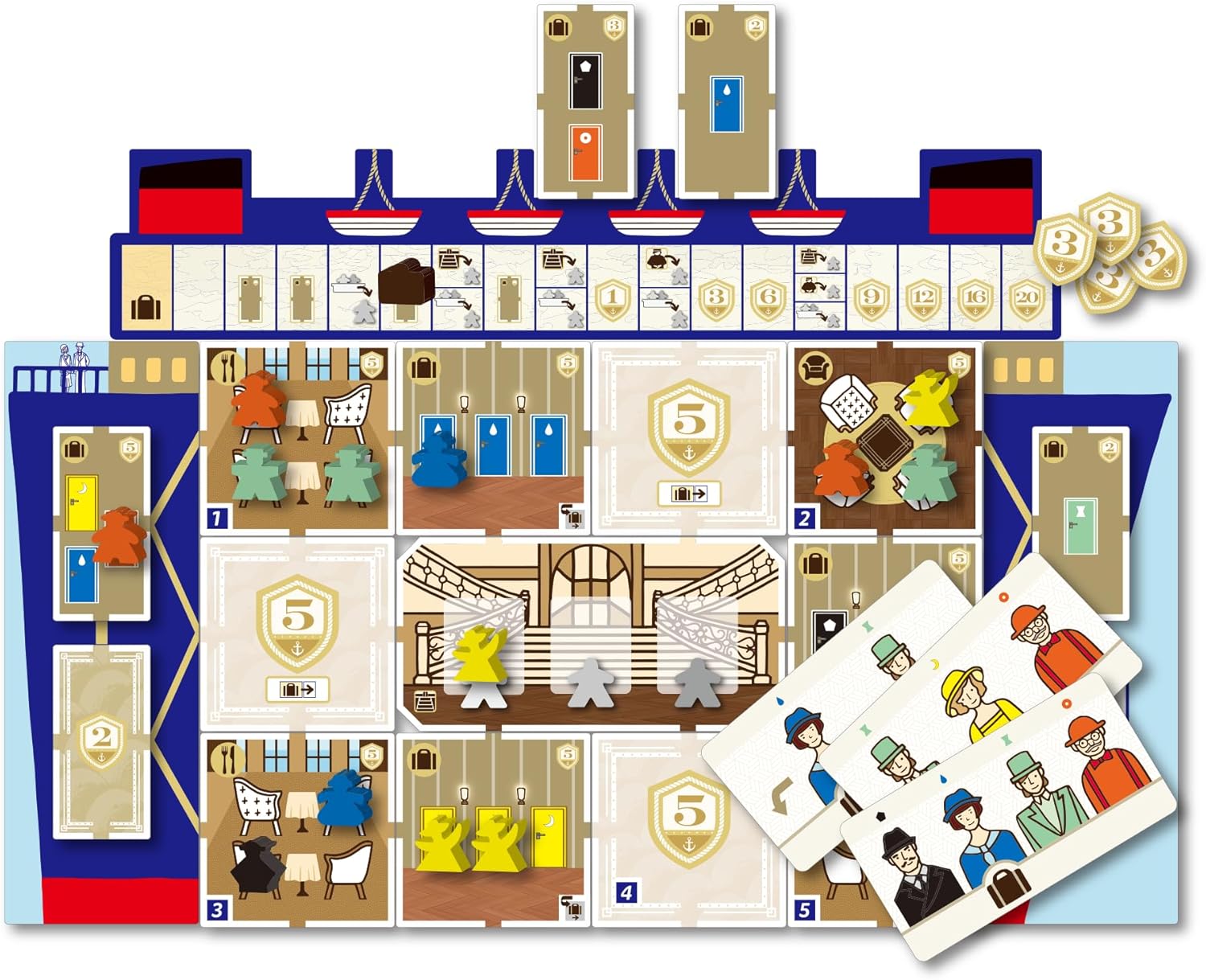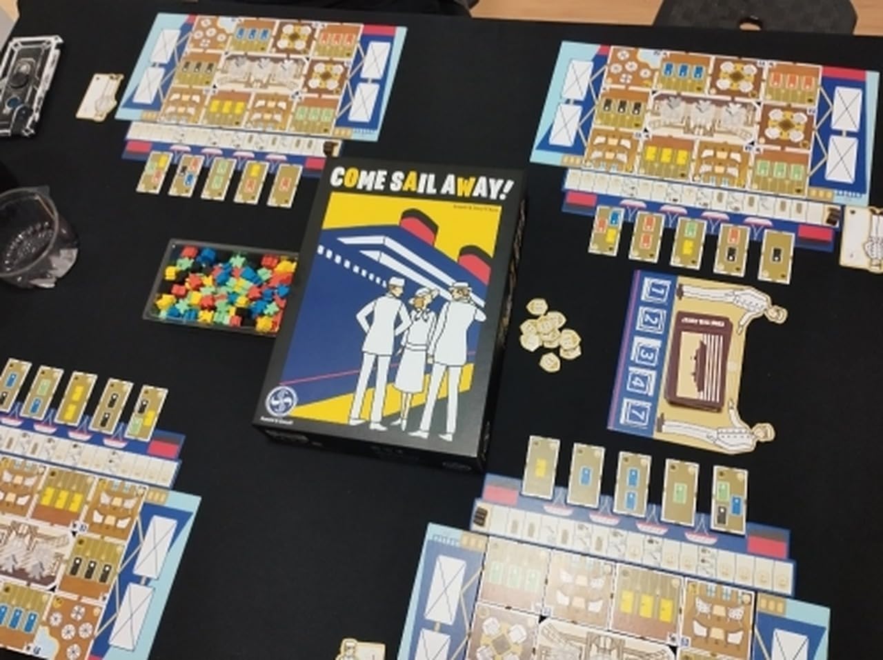 Come Sail Away! é um jogo de tabuleiro para 1 a 4 jogadores no qual você compete para embarcar passageiros em seu luxuoso navio, levando-os às suas cabines e instalações favoritas. Os jogadores podem desfrutar de um jogo deliciosamente reflexivo e brilhantemente ilustrado, simples de aprender, mas sempre desafiador.