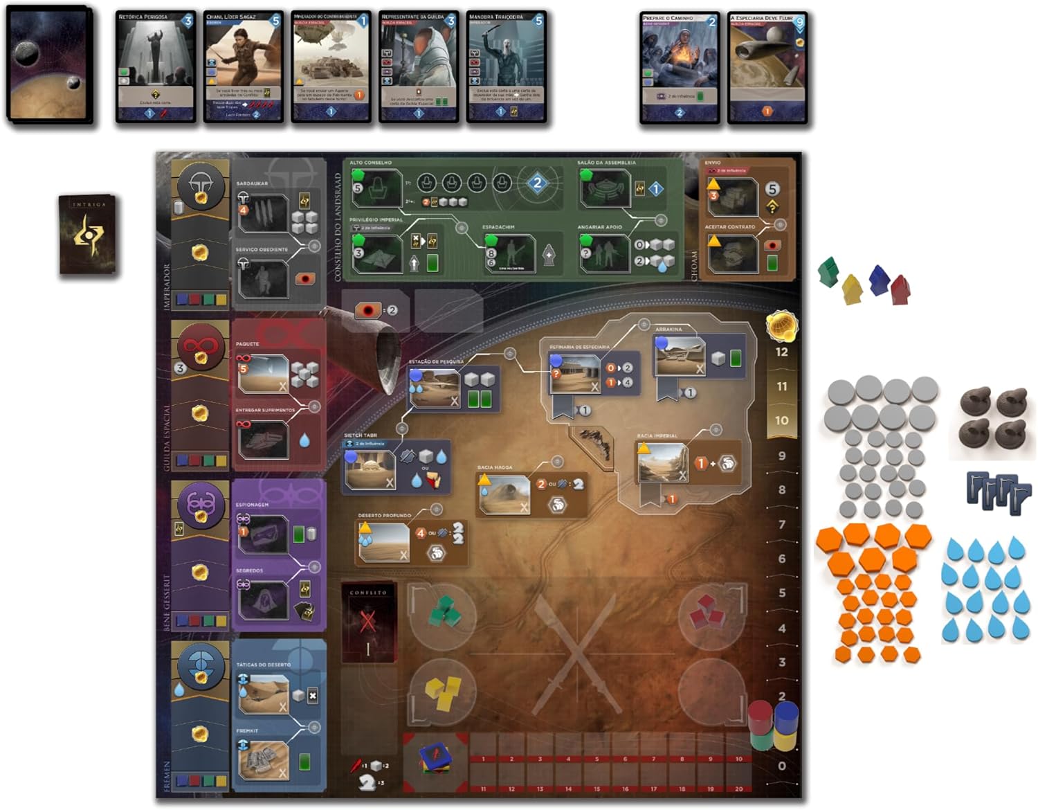 Em Dune: Imperium Uprising, você busca equilibrar o poderio militar com a intriga política, utilizando novas ferramentas em busca da vitória. Espiões reforçarão seus planos, contratos vitais expandirão seus recursos, ou você poderá aprender os costumes dos Fremen e cavalgar poderosos vermes da areia rumo à batalha!