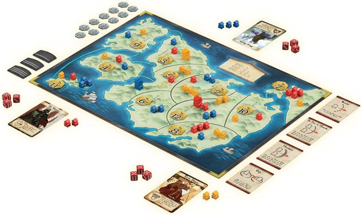 Três dados determinam onde os soldados serão enviados. Cartas de tática são seu trunfo para controlar o curso da guerra. Sabedoria e sorte são suas chaves para a dominação.